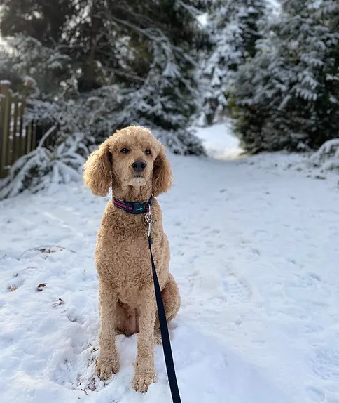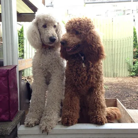 찰스와 제니의 딸 '키위'는 (오른쪽) 스탠다드 푸들인데 사람과 있기를 너무 좋아하고 다른 견종들과도 온순하게 잘 놀고 심지어 가끔 가르치기 까지도 합니다.